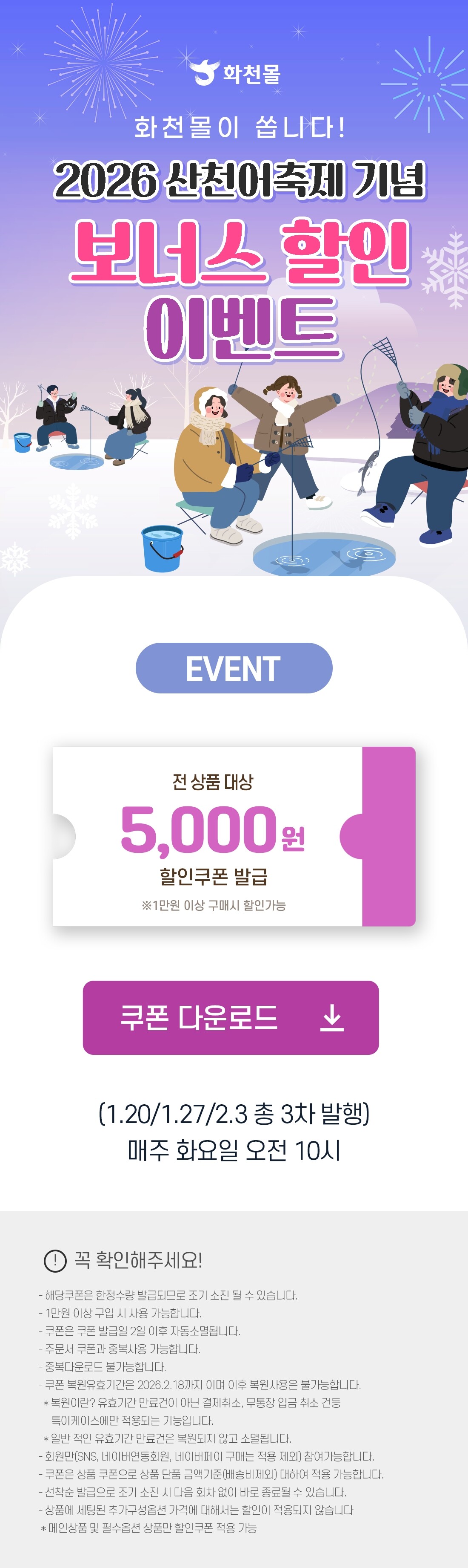 2026 강원화천몰 산천어축제 기념 보너스 쿠폰 발급!